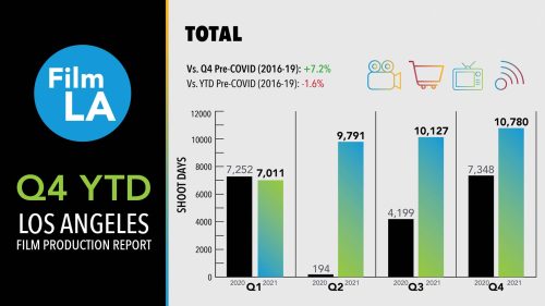 FilmLA, partner film office for the City and County of Los Angeles and other local jurisdictions – today issued an update regarding regional filming activity. According to FilmLA’s latest report, on-location filming in the fourth quarter of 2021 (October-December) remained robust, setting an all-time quarterly record of 10,780 Shoot Days… >>Read more