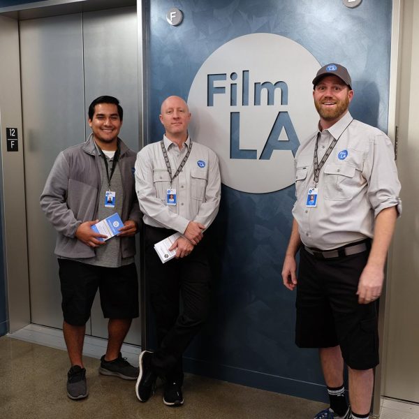 As a reminder, all FilmLA staff working in the field are required to carry credentials identifying them as FilmLA employees. Look for the logo-branded lanyards and badges, and say hi when you see us on the streets!