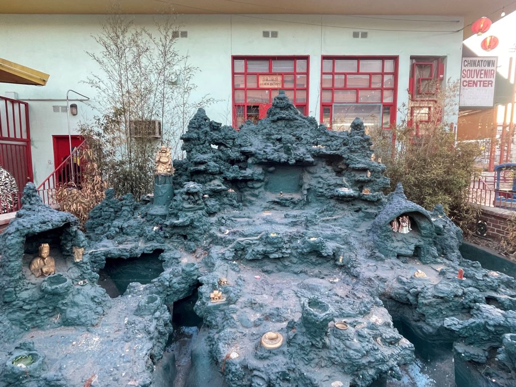 Downtown Los Angeles’ Chinatown neighborhood is not the first neighborhood to bear that name. Old Chinatown, located at the site of Union Station, had a long and at times, deeply tragic history. Corruption, vice and decline culminated in land transfer to developers and near total displacement of area businesses and residents. When with City support Southern Pacific and other railroad companies acquired all land east of Alameda Street, nearly all of the then-existing structures were demolished. Several remaining buildings were razed in the 1950’s to make room for parking lots and on-ramps for the 101 Freeway.